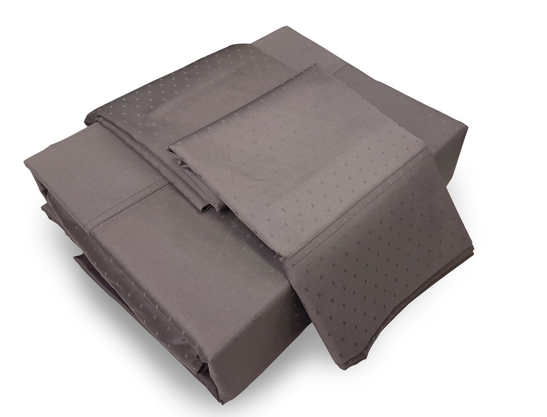A Swiss Dot bed sheets set in taupe